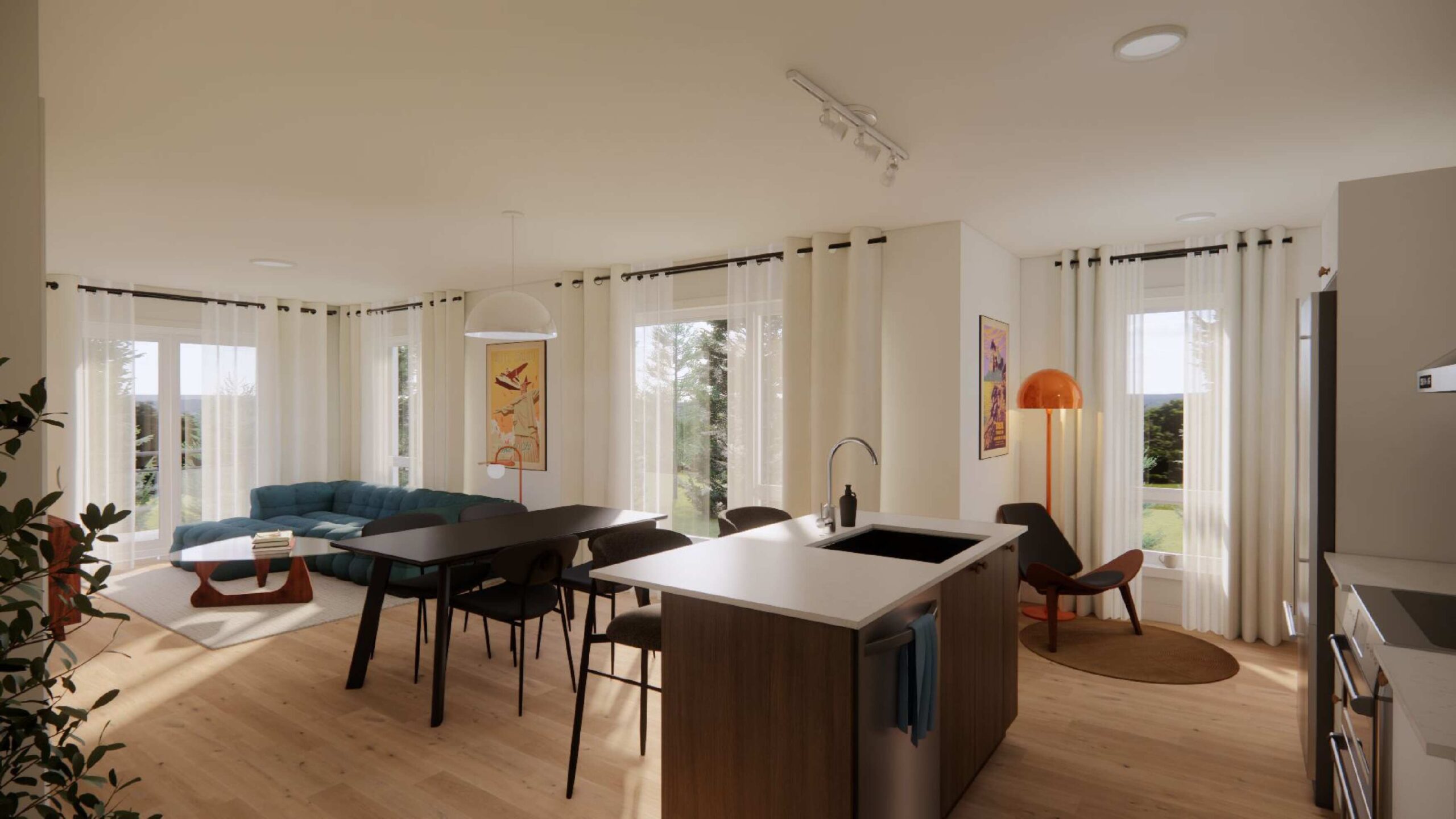 Axé sur le bien-être des occupants, le projet propose une formule tout inclus ainsi que des aires communes modernes comprenant un gym, une piscine extérieure et un coin détente pour recevoir parents et amis.